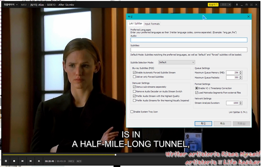 LAV 필터 설정을 위해서 들어가면 온통 못알아먹을 말들 뿐인데요, 따로 설정을 안 해줘도 그냥 설치만 다 되면 mkv 영상은 나옵니다. 그러니 딱히 손대지 않아도 됩니다. 영상만 잘 나오면 되죠 뭐. 혹시나 영어 사이트가 불편하다고 생각하시면 LAV 필터 0.74.1 설치 파일을 하단에 첨부해드리겠습니다. 용량이 10MB를 넘는 관계로 2개 파일로 첨부해드리니 두 파일 모두 받아서 압축 풀면 됩니다.